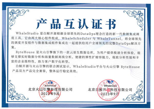 数据作为新型生产要素,已快速融入生产、分配、流通、消费和社会服务管理等各环节,深刻改变着生产方式、生活方式和治理方式。越来越多企业也在尝试充分利用数据要素,开辟全新发展路径,进一步实现业务价值提升。 在数字化转型的大背景之下,火山引擎ByteHouse与白鲸开源旗下WhaleStudio依托于双方完善的产品能力和互补的优势,于近日完成产品兼容性测试。测试结果表明双方产品完全兼容,整体运行稳定高效。此次产品互认将促进双方深入合作,为用户带来一站式、扩展性强、接入便捷的联合数据解决方案。 据介绍,ByteHouse 是一款云原生数据仓库,能为用户提供极速分析体验,支撑实时数据分析和海量数据离线分析,具备便捷的弹性扩缩容能力、极致分析性能和丰富的企业级特性,助力客户数字化转型。而白鲸开源是一家由多名 Apache Software Foundation Member,Apache DolphinScheduler 与 Apache SeaTunnel 核心成员,以及来自全球范围内的数据领域专家创建的云原生 DataOps 开源公司,旗下WhaleStudio 是白鲸开源科技根据全球领先的 DataOps 理念打造的新一代数据集成调度工具,它由两大核心组件组成,WhaleScheduler 与 WhaleTunnel,将全球领先的调度开发组件与数据集成组件集成在一起提供给用户全球领先的完整解决方案。 火山引擎ByteHouse在为用户提供极速分析体验,支撑用户实时数据分析和海量数据离线分析的同时,也在不断加强自身生态兼容性,此前已经支持ansiSQL、ClickHouse SQL语法、Tableau BI工具以及MySQL,此次与WhaleStudio的联合认证,为双方用户提供更顺滑的产品使用体验。 除了生态兼容多样之外,火山引擎ByteHouse具备强大的技术能力和多元的产品功能。基于独家自研的高可用引擎及查询优化器,ByteHouse可以为企业提供快速、稳定、安全的查询服务和数据写入性能。在云原生架构下,火山引擎ByteHouse提供了极致扩展的统一数据分析平台,具有出色的弹性伸缩和可扩展性,确保资源可以灵活地水平扩展;同时,ByteHouse支持多级资源隔离,为用户资源提供更安心的安全保障。 火山引擎ByteHouse在游戏、广告等领域已经积累丰富的落地经验。比如在气象行业,ByteHouse帮助AI大模型与数字孪生公司大地量子实现对气象数据的精准预测。大地量子通过将现场采集及大模型生成的气象数据导入到ByteHouse中,由ByteHouse支撑GEO查询和空间计算能力,满足其对预测系统以及交互式查询需求。在ByteHouse支持下,大地量子的平均查询响应时长不仅在50毫秒以内,预测精准度也得到有效提升。 与白鲸开源的产品互认标志着ByteHouse生态兼容性进一步增强。未来,双方也将继续加强合作,为用户提供更加优质的服务和更加完善的解决方案,更好推动企业完成数字化转型。 |