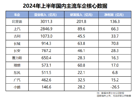 年中财报季到来,中国车企营收喜人。 日前,比亚迪发布了其2024年上半年的财务报告。报告显示,比亚迪的营收为3011.27亿元,较去年同期增长15.76%;净利润为136.31亿元,较去年同期增长24.44%。 与此同时,比亚迪上半年研发投入为202亿元,较去年同期增长42%,比公司的净利润还多出一半。 对此,比亚迪集团品牌及公关处总经理李云飞表示,比亚迪今年上半年的研发费用在5300多家A股上市公司里排名第一。 此外,李云飞表示:比亚迪研发人员超过10万,在全球车企中,排名第一。 财报数据同时披露,2024年,比亚迪校招应届生超万人,研发人员占比近80%、硕博占比近70%。截至目前,比亚迪在全球范围内的专利申请总数已超过4.8万项。 高额研发投入促进销量增长 事实上,比亚迪在研发领域的高投入,并不是近两年才开始的。成立至今,比亚迪累计研发投入已经超过1600亿元。过去三个季度研发投入连续超过100亿元。 研发投入转化为技术储备,让比亚迪成为了新能源汽车时代最具技术实力的车企。 此前,比亚迪总裁王传福曾将其概括为:“比亚迪拥有一个‘技术鱼池’,里面有各种各样的技术。当市场需要时,我们就捞一条出来。” 近年来,比亚迪在新能源汽车领域持续发力,陆续推出了刀片电池、DM-i超级混动、e平台3.0、易四方、CTB电池车身一体化、云辇、第五代DM技术、易三方等一系列新能源专属技术。 这些新技术搭载在比亚迪的众多车型上,带来了直接的销量转化。今年1-8月,比亚迪汽车累计销量已达到232.84万辆,较去年同期增长29.92%。据MarkLines数据显示,今年第二季度,比亚迪销量已超越本田成为全球第七大车企。 自主品牌财务数据普遍增长 从今年上半年各大车企公布的财报数据,我们也能一窥中国汽车产业的市场格局变化。 今年上半年,比亚迪营业收入首次超越上汽集团,位列国内主流车企第一。不止比亚迪,中国自主品牌车企营收普遍快速增长,而合资品牌则增长乏力。 而放眼整个中国汽车工业,根据中国上市公司协会日前发布的报告显示,今年上半年,中国汽车行业营业收入增长超8%,净利润增长超20%,景气度明显提升。 上交所数据显示,中国汽车产业链(仅统计上交所上市企业)营收、净利润分别同比增长5%、45%,近七成汽车零部件企业实现正增长。在出海浪潮影响下,42家汽车零部件企业海外收入同比增长达8%。 这些数据表明,此前业界热议的“内卷式竞争”可能是个伪命题——汽车行业的竞争固然存在,但这种竞争并未导致行业营收、利润下降。相反,行业的整体营收、利润仍在增长。 技术领先助力中国新能源汽车弯道超车 从主流上市车企2024年半年报可见,比亚迪是中国汽车行业当之无愧的“研发之王”。比亚迪的研发投入高于特斯拉(约人民币161亿),几乎等于长城、理想、吉利、长安之和。此外,比亚迪上半年研发投入是长城的三倍以上,是吉利的四倍以上。 而高额的研发投入,对于企业而言也意味着巨大的成本。 如果用研发投入与净利润进行对比,从2011年至今,在过去的14年里,比亚迪有13年研发投入高于净利润,有时候甚至是同期净利润的几倍。 值得注意的是,近年来崛起的造车新势力们,虽然营收规模不大,但研发投入力度也不容忽视。例如,2024年上半年,蔚来营收273.55亿元,亏损103.84亿元;在亏损的情况下,蔚来依然保持着60.83亿元的研发投入。同期,理想营收573.1亿元,研发投入则达到了60.76亿元。 毋庸置疑,在新能源转型的大背景下,全球汽车工业的新一轮洗牌,只有技术领先的车企才能脱颖而出。以比亚迪为代表的中国汽车品牌,正在全球市场上立稳脚跟。 根据易车榜最新数据,比亚迪7月销量为34.2万辆,已跃升至全球第三,仅次于丰田与大众。 中国汽车在海外的扩张也突飞猛进。根据中汽协数据,今年8月,我国汽车出口40.8万辆,环比增长3.9%,同比增长32.1%。1-8月,中国汽车累计出口294.1万辆,同比增长61.9%。根据行业人士分析,今年下半年,中国汽车出口量还将继续保持增长,海外的中国汽车将变得越来越多。 |