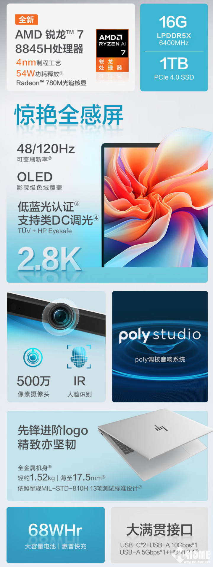 上周,高通预告将在4月24日发布新处理器,疑似骁龙X系列;英特尔有望四季度发布下一代锐炫“Battlemage”独立显卡;2024年第一季度国内显示器销量销售额齐跌;惠普上新星Book Pro 14 2024锐龙版。 高通骁龙X系列将于4月24日发布 社媒已开启预热 此前高通已经对即将发布的骁龙X系列处理器进行了不少预热,但始终没有公布具体的发布日期。高通骁龙官方上周在X平台发布了疑似新品预热的视频,并且配文“敬请期待4/24”,视频中大量的“X”字母和芯片元素都暗示了即将发布的骁龙X系列产品。此外,高通骁龙官方微博也发布了“芯片背后的故事第一集|骁龙X的诞生”的预热视频,同样暗示了骁龙X系列即将发布。 此前高通已经展示了该系列的旗舰处理器骁龙X Elite,采用了定制的集成高通Oryon CPU,集成多达12个高性能核心,全核主频最高可达3.8GHz,单核、双核加速频率则高达4.3GHz,还集成了总计42MB缓存,最高支持LPDDR5X 8533MHz,8个通道,最高带宽136GB/s,最大容量64GB。存储支持PCIe 4.0 NVMe SSD、UFS 4.0、SD 3.0扩展卡。 GPU方面,骁龙X Elite依旧采用高通Adreno GPU,支持DX12,算力高达4.6TFlops。AI表现方面,高通骁龙X Elite集成了来自移动平台的AI引擎Hexagon NPU,总算力最高75TOPS,NPU峰值算力45TOPS,端侧生成式AI处理能力每秒30 Token,可以在本地处理130亿参数大模型。此外,此前的消息称高通还在测试该系列处理器当中的低配骁龙X PLUS,可能配备核心数更少的CPU和GPU。 轻薄本市场新搅局者终于来了,但Windows在Arm平台的表现真的准备好了吗? 曝英特尔四季度发新一代显卡 正面对抗红绿厂 此前英特尔已经在多个场合表示其下一代锐炫“Battlemage”独立显卡将会在今年年内发布,并且也已经有不少爆料带来了关于这一系列显卡的规格信息。根据外媒ComputerBase的最新消息表明,英特尔有望在西方传统的“黑色星期五”前发布该系列产品。 据消息人士透露,英特尔将会在2024年底前推出下一代锐炫Battlemage“Xe2”GPU,时间上应该接近美国一年一度的采购节“黑色星期五”(11月29日),相信这一发布时间也有着销售上的考量。而且这一时间距离英特尔发布第一代锐炫系列显卡的发布日期正好过去了接近两年,这也与显卡产品大多为两年进行换代的惯例相吻合,同时这一周期以及时间也与英伟达和AMD的显卡更新周期契合,这意味着今年年底我们有望看到三家显卡厂商同时换代推出新品的激烈场景。 此前已经有数款Battlemage GPU曝光,包含用于旗舰产品的BMG-G10和BMG-G21,还可能有用于入门产品的BMG-G31。但此前也有传闻称英特尔砍掉了Battlemage里旗舰级的BMG-G10 GPU,仅保留规模更小的BMG-G21 GPU,但目前来看一切仍是未知数。完整的BMG-G10拥有56个Xe核心,搭配16GB的GDDR6显存,位宽为256bit;BMG-G21则拥有40个Xe核心,位宽为192bit,性能大概在RTX 4060 Ti至RTX 4070之间。新一代GPU继续选择台积电(TSMC)代工,采用4nm工艺制造。 鲜辣酷评:周期虽然对上了但性能落后一代,英特尔还需努力啊。 一季度显示器线上销量下滑 AOC稳居第一小米第三 洛图科技现已发布了《中国大陆显示器线上零售市场月度追踪》报告,报告显示,2024年第一季度,中国大陆显示器在线上公开零售市场的销量为209万台,同比下降6%;销售额为22亿元,同比下降12%。 据洛图科技分析,一季度中国显示器电商市场整体市场需求疲乏;随着今年第一季度上游面板等零部件价格的上涨,成本上行,部分企业开始调整低价策略,以求获得更好的利润空间;产品同质化和结构升级并行;OLED/Mini LED在高端市场积极导入;传统电商遭遇规模瓶颈,其它渠道未能崛起。 从品牌来看,随着市场入局者的增多,中国显示器线上市场的集中度逐渐降低。AOC位居线上市场销量、销额的双线第一,份额均约为15%,略有小幅增长。HKC和小米分别位列线上市场的销量第二和第三。在中高端产品线,三星的OLED和Mini LED产品在市场的份额处于领先地位。 根据洛图科技(RUNTO)线上监测数据,2024年第一季度,显示器线上市场的均价约为1072元,比去年同期下降了38元。主流价格段依旧是500-1000元之间,份额达到47%,较去年同期增长5个百分点,其中增量主要由1000-1500元价格区间的产品下沉而来。2000元以上的中高端市场主要集中于一线品牌的产品布局,如三星、LG、AOC等。整体来看,中高端的需求较为平稳,市场份额保持稳定。 产品分布上看,上游厂商正在加大OLED/Mini LED显示的产能布局,品牌参与者正在增多,产品线也发生了显著完善。根据洛图科技(RUNTO)线上监测数据显示,第一季度,OLED与Mini LED显示器产品在线上市场的渗透率尽管仍在1.5%之下,但销量分别实现同比增长52%和48%。 从之前所述的价格段分布结构来看,显示器市场的高端需求相对稳定,对产品高追求的用户长期存在。接下来,随着产业链的成熟、整体成本的下降,OLED与Mini LED的渗透率仍将快速增长。 继2023年电子竞技正式成为亚运会比赛项目的里程碑事件之后,电竞在中国市场消费电子领域的影响力正在快速扩散。根据洛图科技(RUNTO)线上监测数据显示,2024年第一季度,中国电竞显示器的零售量达到121万台,同比上涨24.7%,单季渗透率创下新高,达58%。位居电竞显示器线上零售市场前三名的品牌分别是AOC、HKC和SANC,三者的销量份额均超过10%。特别是SANC作为后起之秀,与去年同期相比,份额提升了7.6个百分点,展现出强劲的增长势头。 根据洛图科技(RUNTO)线上监测数据显示,目前电竞显示